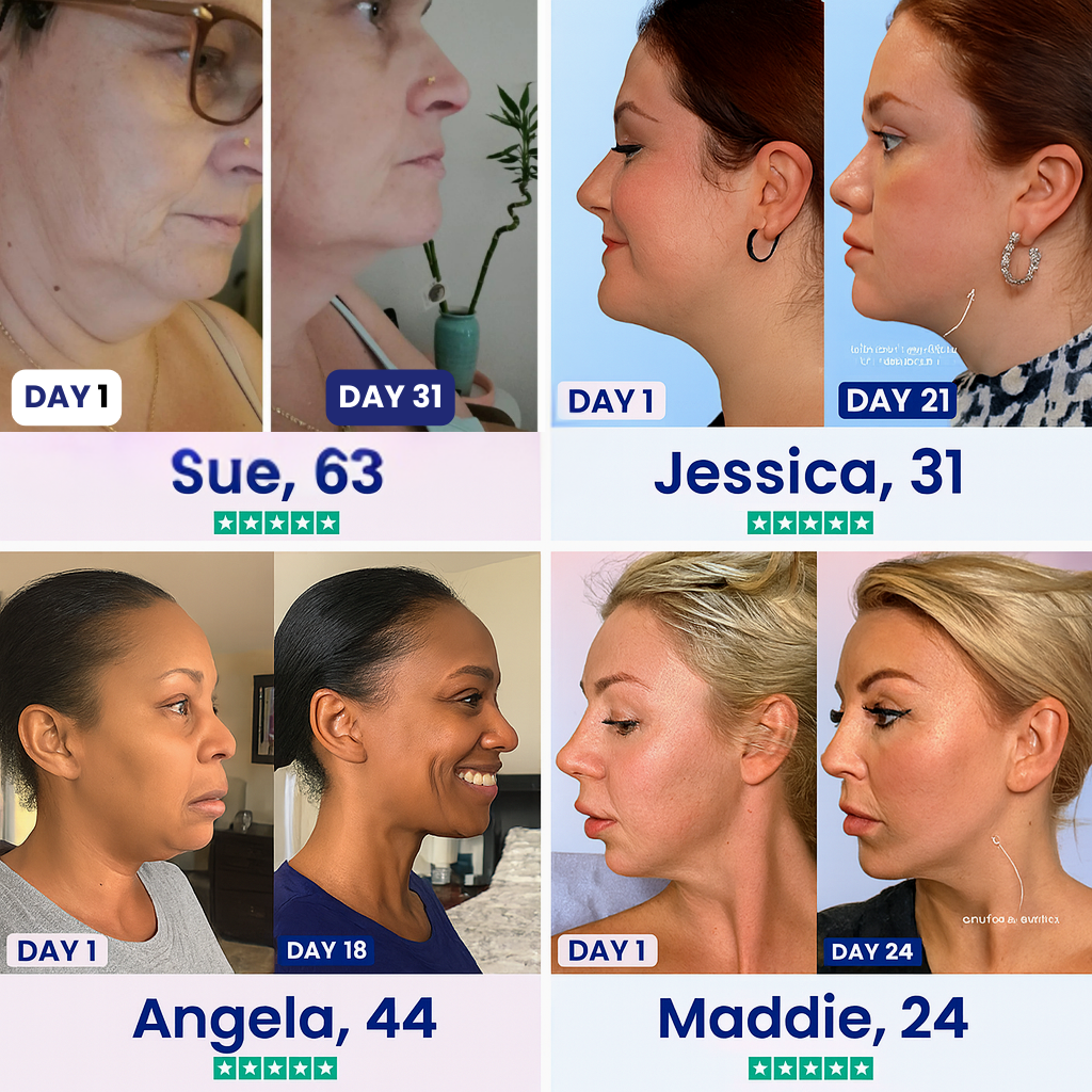 Turn on, select your comfort level, and glide along your jawline and face following our simple guide. Feel the gentle micro-pulses working.